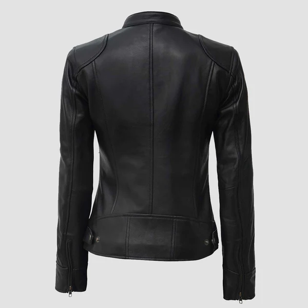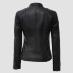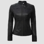 Womens Black Lambskin Leather Moto Jacket Dodge